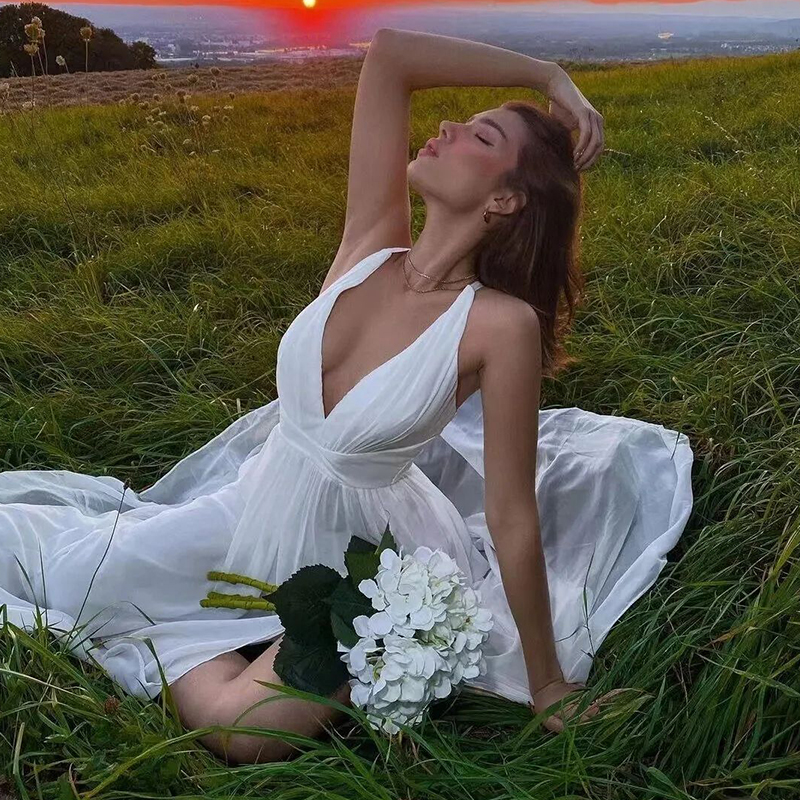 Der tiefe V-Ausschnitt ist genau richtig, und mit dem Anti-Belichtungs-Design ist er nicht nur sicher, sondern bringt auch das Schlüsselbein gut zur Geltung und zeigt ein wenig Sexiness.