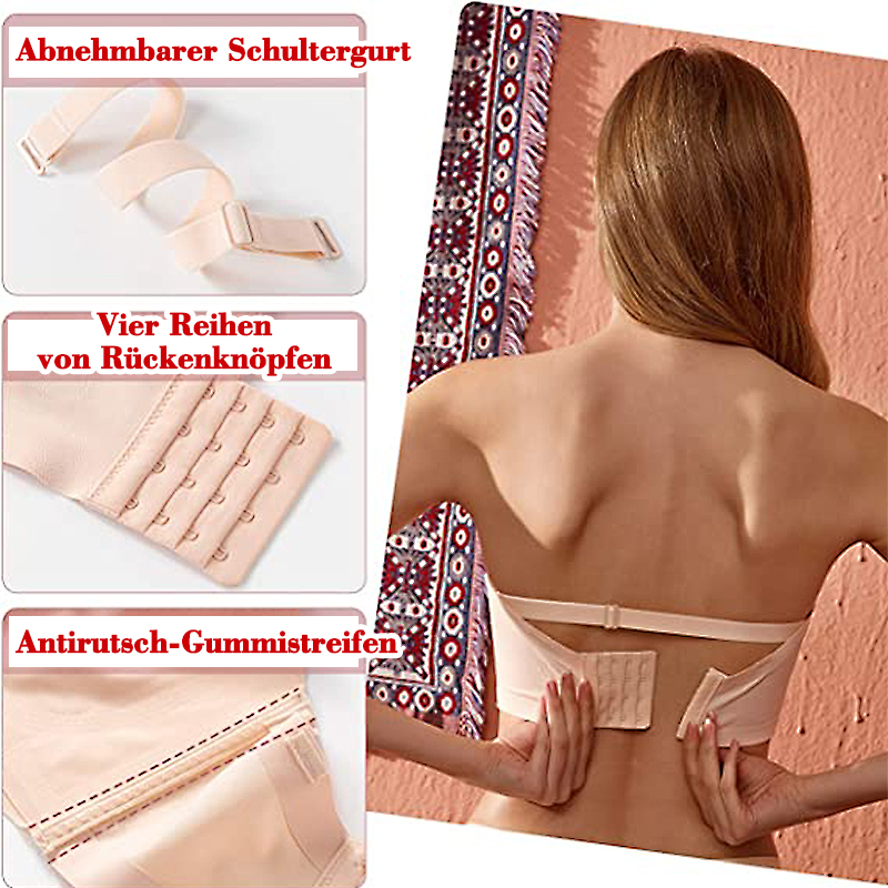 Das HalloBH-Designteam untersuchte über 1.000 Dessous auf dem Markt und stellte fest, dass den meisten ein vernünftiges Design fehlte, um sich perfekt an die Figur einer Frau anzupassen. Unsere Designer analysierten tausende von Daten und entwarfen diesen trägerlosen BH. Der BH ist extrem dehnbar und passt sich einer Vielzahl von Brustformen an, ohne dass es zu Problemen wie leeren Körbchen oder undichten Körbchen aufgrund einer ungleichmäßigen Verteilung des Brustvolumens kommt. Das importierte Anti-Rutsch-Band an den Rändern und das stoßfeste Design sorgen dafür, dass der BH den ganzen Tag über an seinem Platz bleibt und eine kontinuierliche Raffung und Formung bietet.