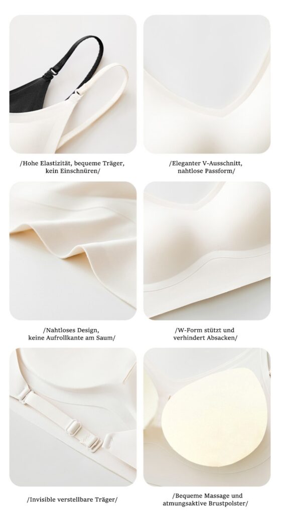 Wir wissen, wie wichtig Komfort für Unterwäsche ist, daher hat der HalloBH hoch dehnbare und hoch atmungsaktive Stoffe ausgewählt, um Ihnen ein unvergleichliches Tragegefühl zu bieten. Das Material ist weich und hautfreundlich, passt sich fein an den Körper an und fühlt sich natürlich an wie eine zweite Haut. Die ausgezeichnete Atmungsaktivität sorgt dafür, dass Sie auch an heißen Sommertagen frisch und nicht klebrig bleiben. Egal ob im Alltag, beim Einkaufen oder beim Sport, Sie können ein unvergleichliches Komfortgefühl genießen.
