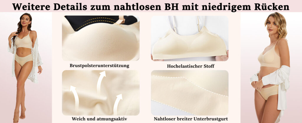 Ich habe diesen low back bra gekauft und er hat alle meine Erwartungen übertroffen. Er sitzt bequem und bietet sicheren Halt, ohne zu hängen. Im Gegensatz zu anderen BHs schneiden keine Bügel in meine Haut ein, sodass er sich perfekt für den ganztägigen Gebrauch eignet. Der Stoff fühlt sich hochwertig und strapazierfähig an. Ich empfehle diesen BH, wenn Sie Komfort und Stil zu einem vernünftigen Preis in einem Paket suchen.
