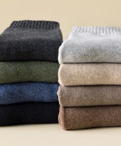Aus ausgewähltem Langstapelflanell gefertigt, hergestellt mit einem engen Ringgarne-Werkverfahren. Jeder Stich, 32 Arbeitsgänge, bieten Ihnen ein Paar hochwertige Socken, die nicht drücken, nicht riechen und angenehm weich sind.