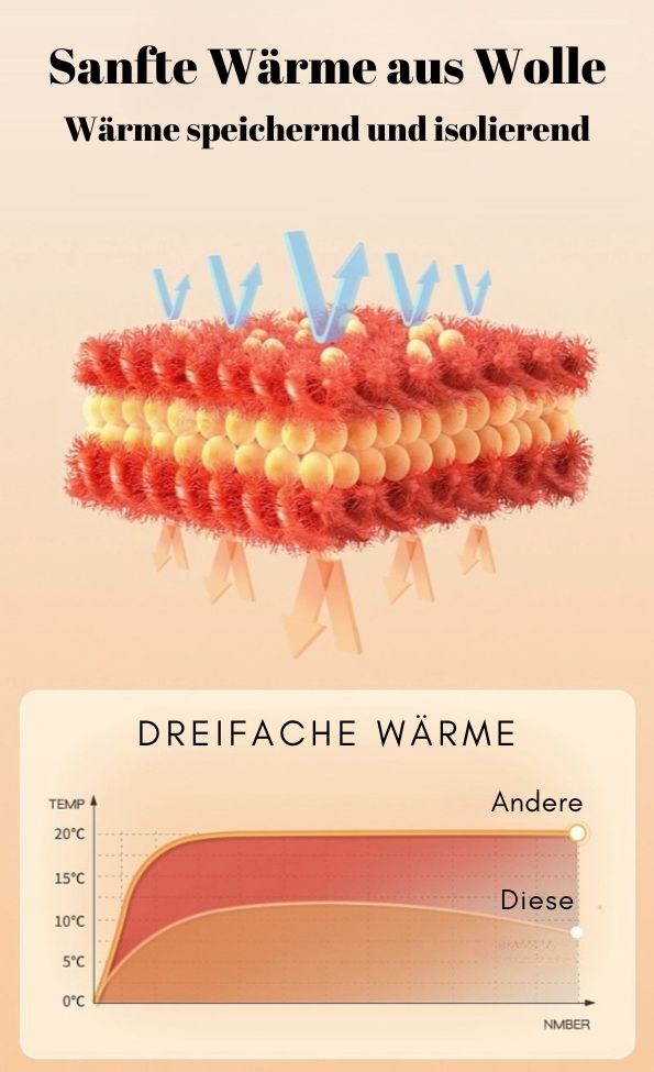 Die dickeren Wollsocken geben Ihnen die dreifache Wärme.  Die speichern nicht nur die Wärme, sondern halten sie auch den ganzen Tag warm.