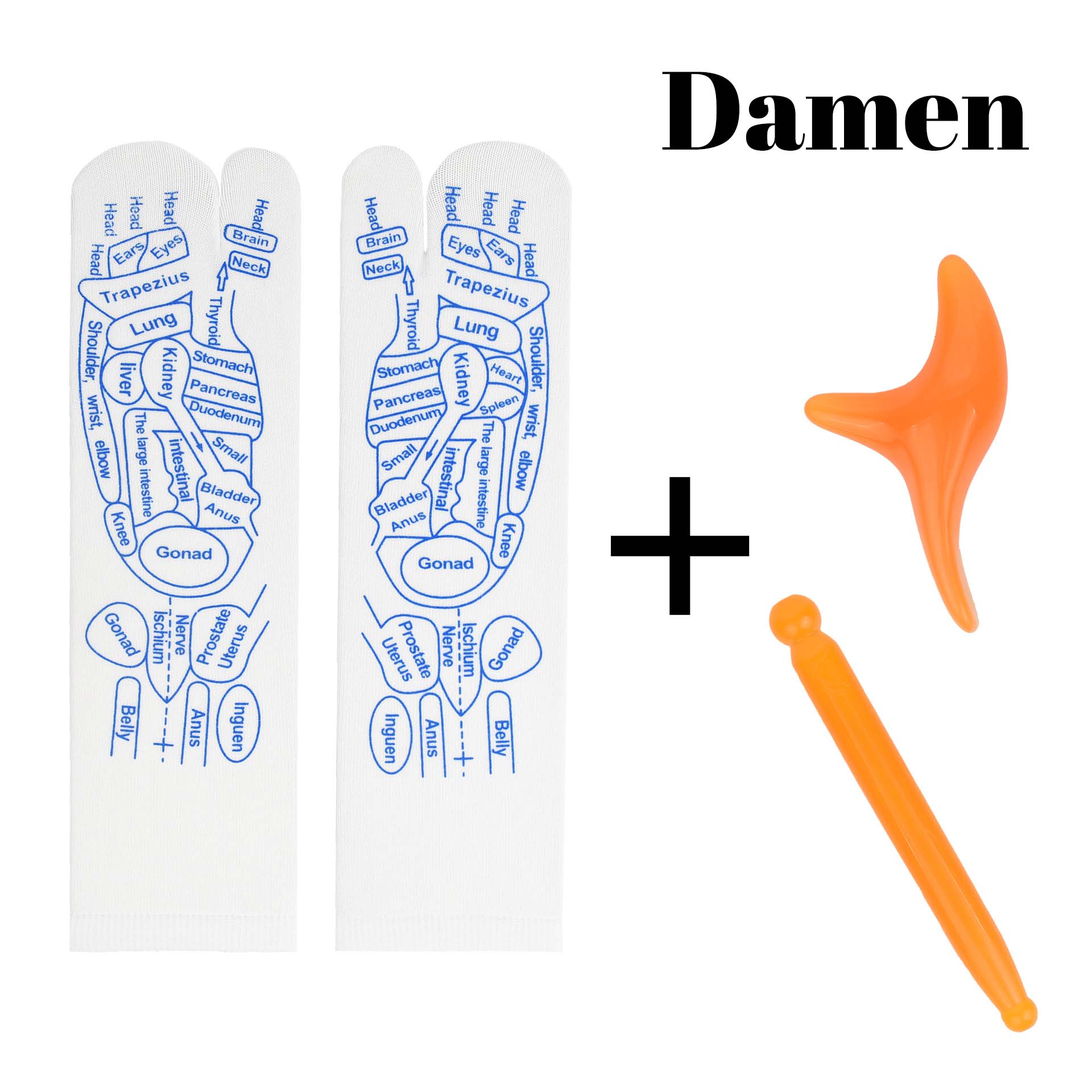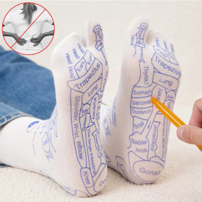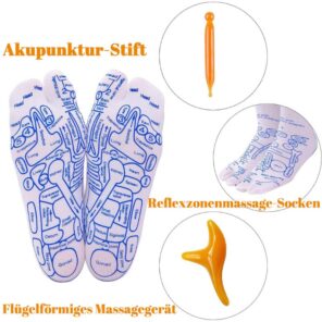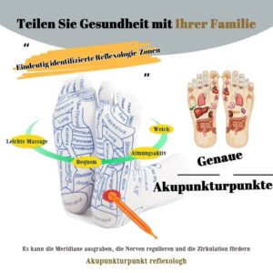 - Reflexzonen-Socken: Tragen Sie die Socken, um die markierten Reflexzonen zu lokalisieren, und massieren Sie sie mit Ihren Händen oder den mitgelieferten Werkzeugen.