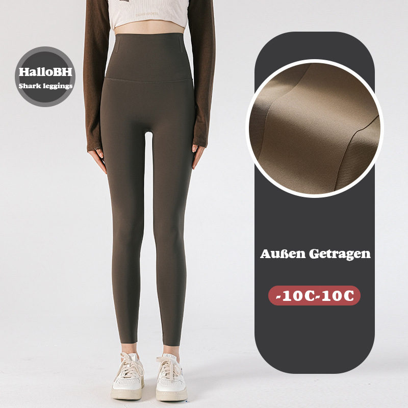 Die „Shark-Legging“ von HalloBH haben insgesamt kein übermäßig komplexes Design, sind äußerst vielseitig und passen zu vielen Outfits. Das Innenmaterial ist jedoch feiner und sorgfältiger gearbeitet und sowohl modisch als auch warm. Die Innenseite der „Shark-Legging“ ist mit Algenplüsch der dritten Generation gefüttert. Die Wärmeleistung dieses Materials beruht nicht auf Dicke, sondern auf seiner hervorragenden Absorptions und Wärmefreisetzungsleistung, wodurch eine angenehme Wärme ohne Überhitzung erreicht wird.