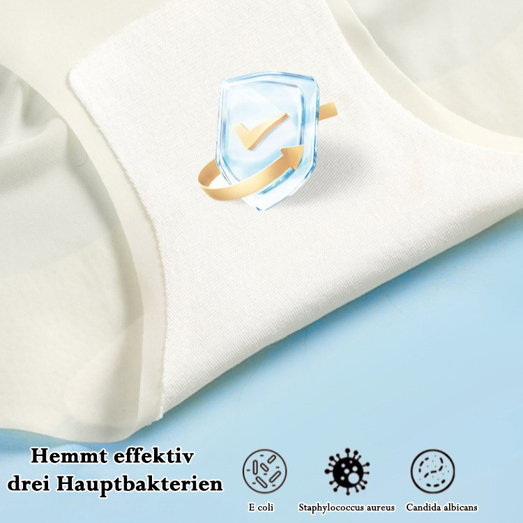 Unsere antibakterielle Seidenstoffe im Schritt sind speziell behandelt, um ihre antibakterielle Wirkung auch nach wiederholtem Waschen zu erhalten. Selbst nach mehreren Waschgängen behalten sie ihre hohe Effektivität bei und schützen langfristig Ihre Gesundheit.