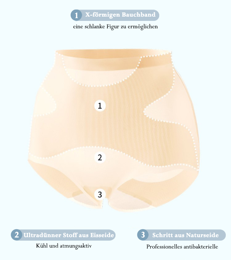 In Anbetracht von Komfort, Atmungsaktivität, antibakteriellen Eigenschaften und figurformendem Design hat HalloBH speziell für Frauen diese dreifach wirkende Unterhose aus Eisseide entworfen, die einen hohen Bund, Bauchweg- und Po-lifting-Effekte kombiniert